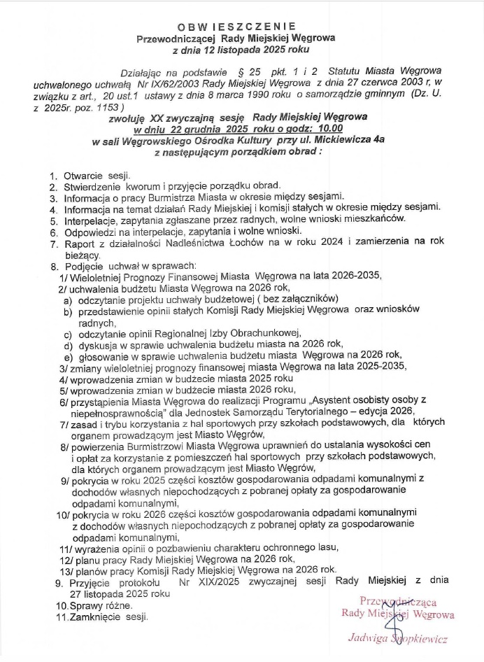 XX zwyczajna sesja Rady Miejskiej WęgrowaArchiwum