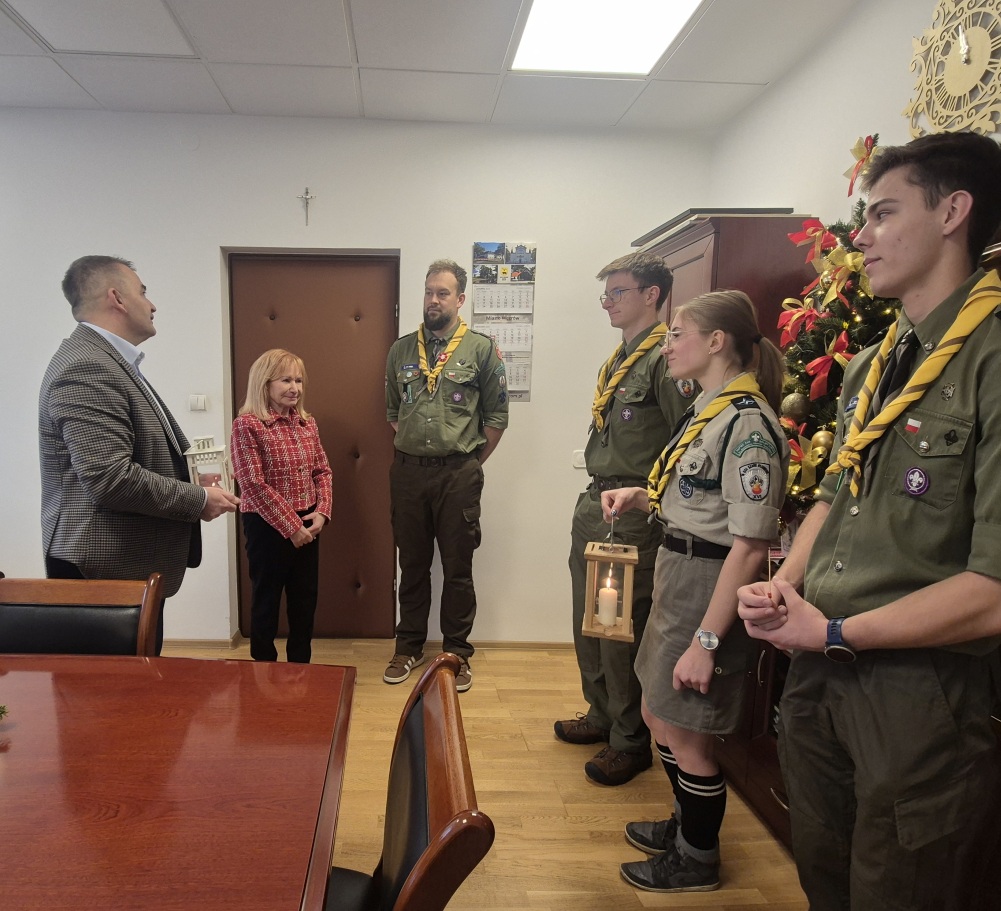 Harcerze z Hufca Doliny Liwca im. Edmunda Zarzyckiego w Węgrowie przekazali w dniu 16.12.2025 r. Burmistrzowi Węgrowa Panu Pawłowi Marcheli i Zastępcy Burmistrza Panie Halinie Ulińskiej Betlejemskie Światło Pokoju. W tym roku przekazywaniu Betlejemskiego Światła Pokoju towarzyszy hasło „Pielęgnuj dobro w sobie”. Betlejemskie Światło Pokoju będzie docierało do mieszkańców oraz instytucji z terenu Węgrowa.