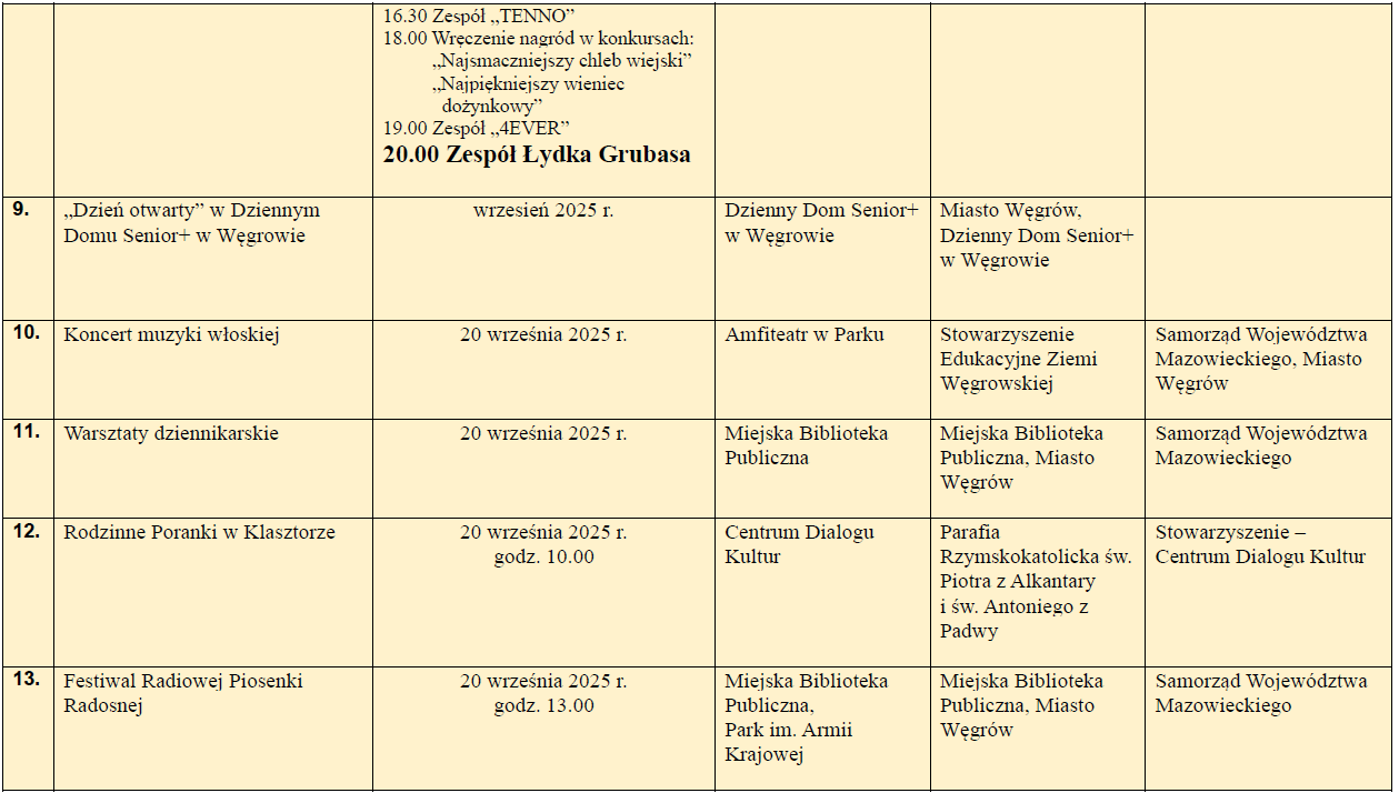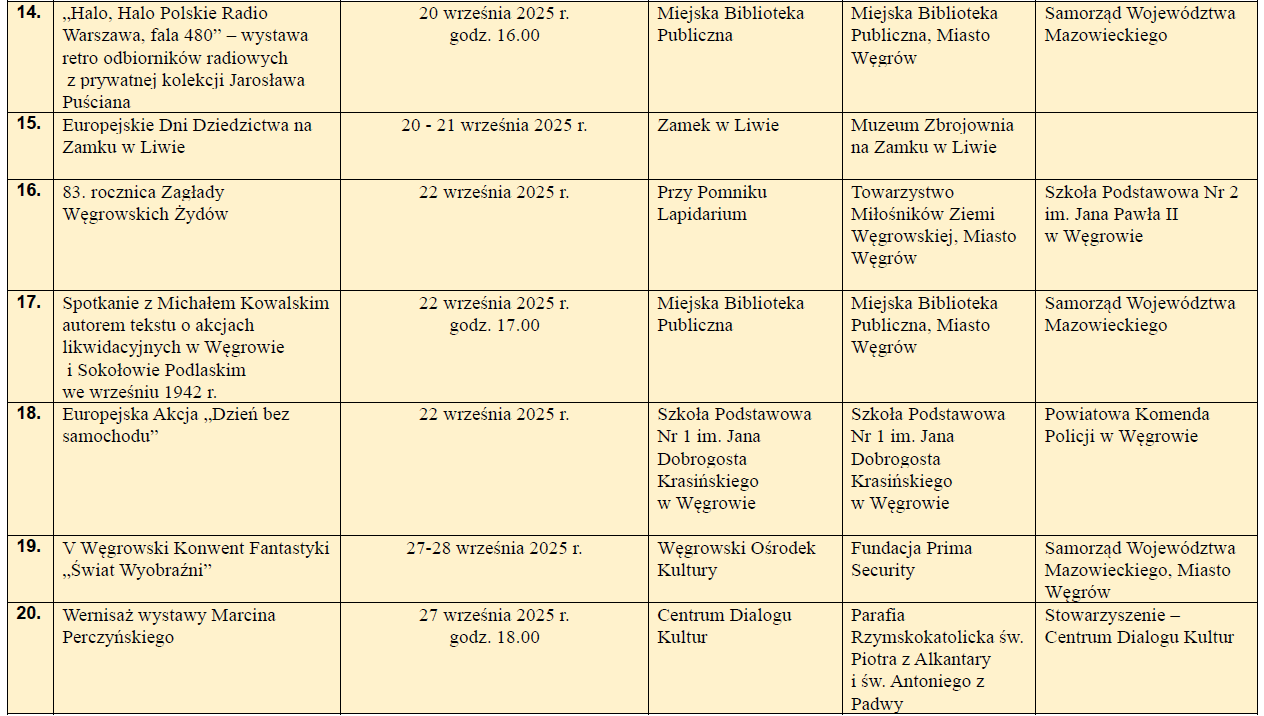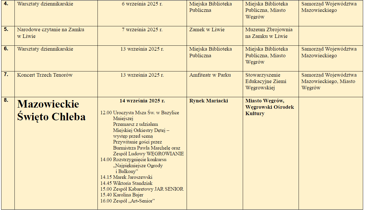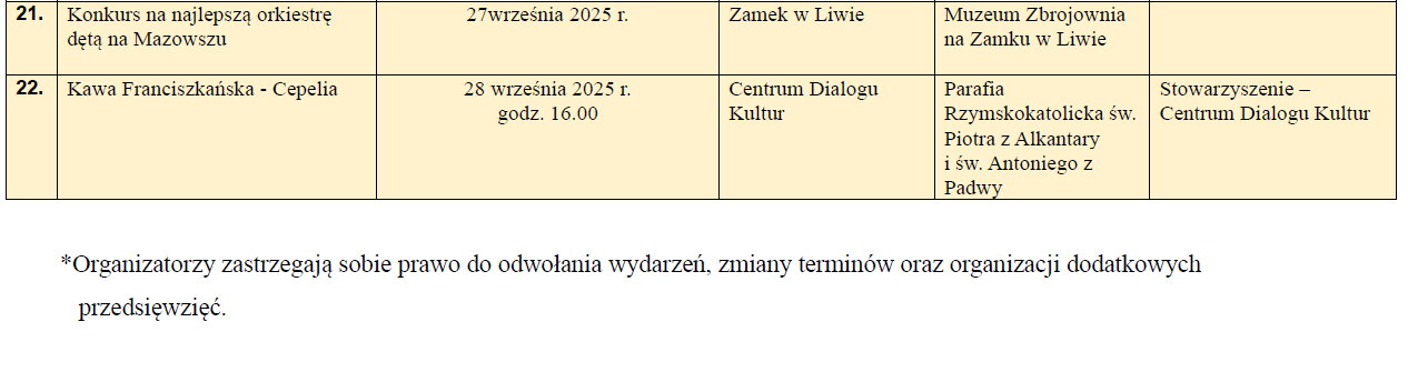 Kalendarium wydarzeń wrzesień 2025Archiwum