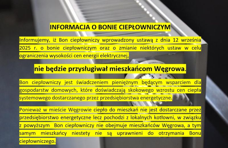 Kierownik Centrum Pomocy Społecznej przekazuje informację dla mieszkańców Węgrowa